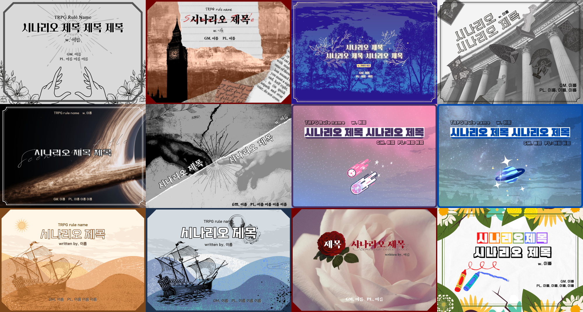 - TRPG용 세션 카드 제작을 위한 캔바 (Canva) 템플릿을 배포합니다.